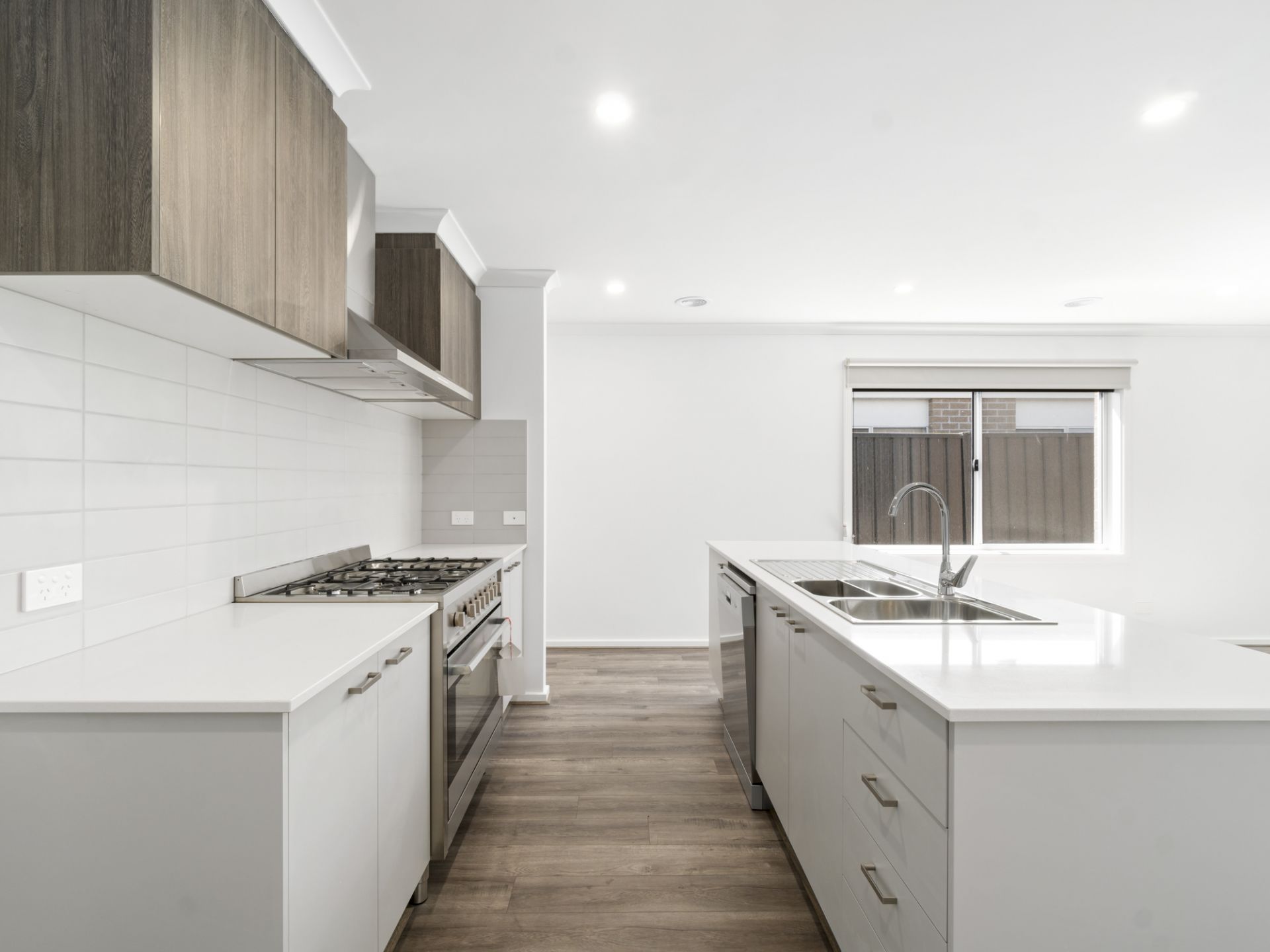 - Kitchen with gas cooktop, dishwasher, pantry and island bench and double sink
