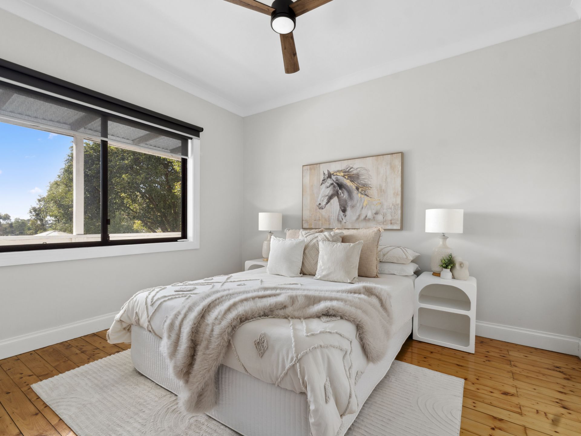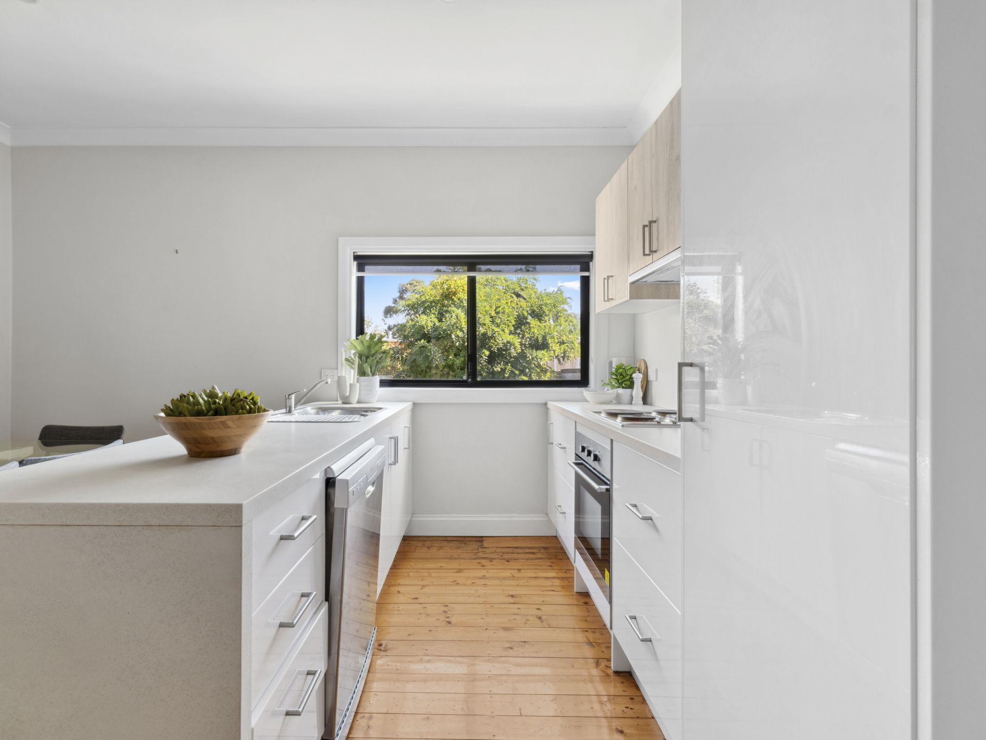 The three bedroom, two bathroom home was fully renovated five years ago and the floorplan consists of a master suite with built in robe and ensuite, open plan kitchen and living area with wood heating as well as split system air conditioning. The neutral colour palette and modern appliances complete a desirable package inside.