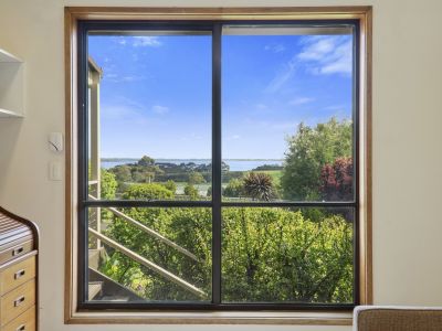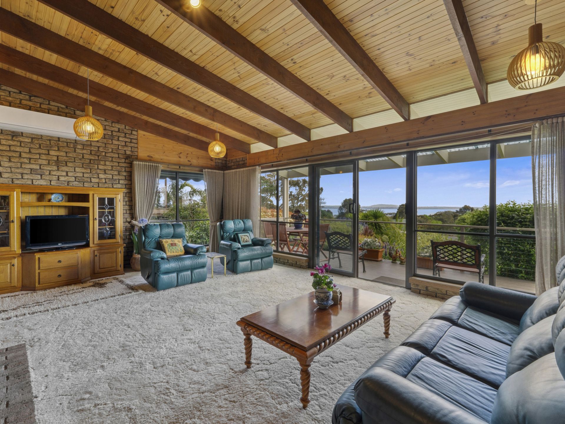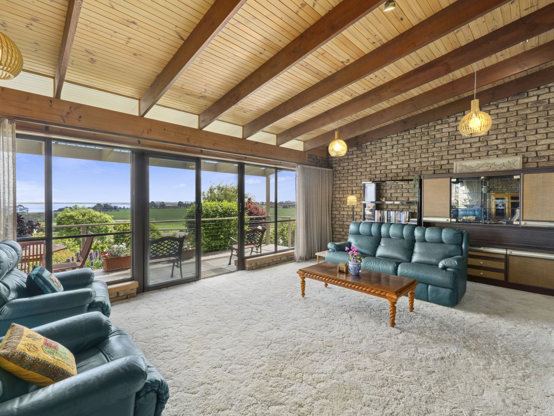 Positioned on a slightly elevated generous 926sqm block, this well-built 3-bedroom, 1-bathroom, solid brick home offers a timeless feel as you enter with a unique design incorporating a built-in bar, raked ceiling and internal brick walls. Comfort, practicality and a picturesque outlook over Colac Lake are all on offer at 112 Marriner Street. Set back off the street and surrounded by an established and beautifully manicured garden, the paved driveway leads to the rear entrance, you're welcomed by an enclosed morning sunroom. At the front, the deck is the perfect spot to enjoy a morning coffee or wind down in the evening, all while soaking in the beautiful north and east facing lake and rural views.