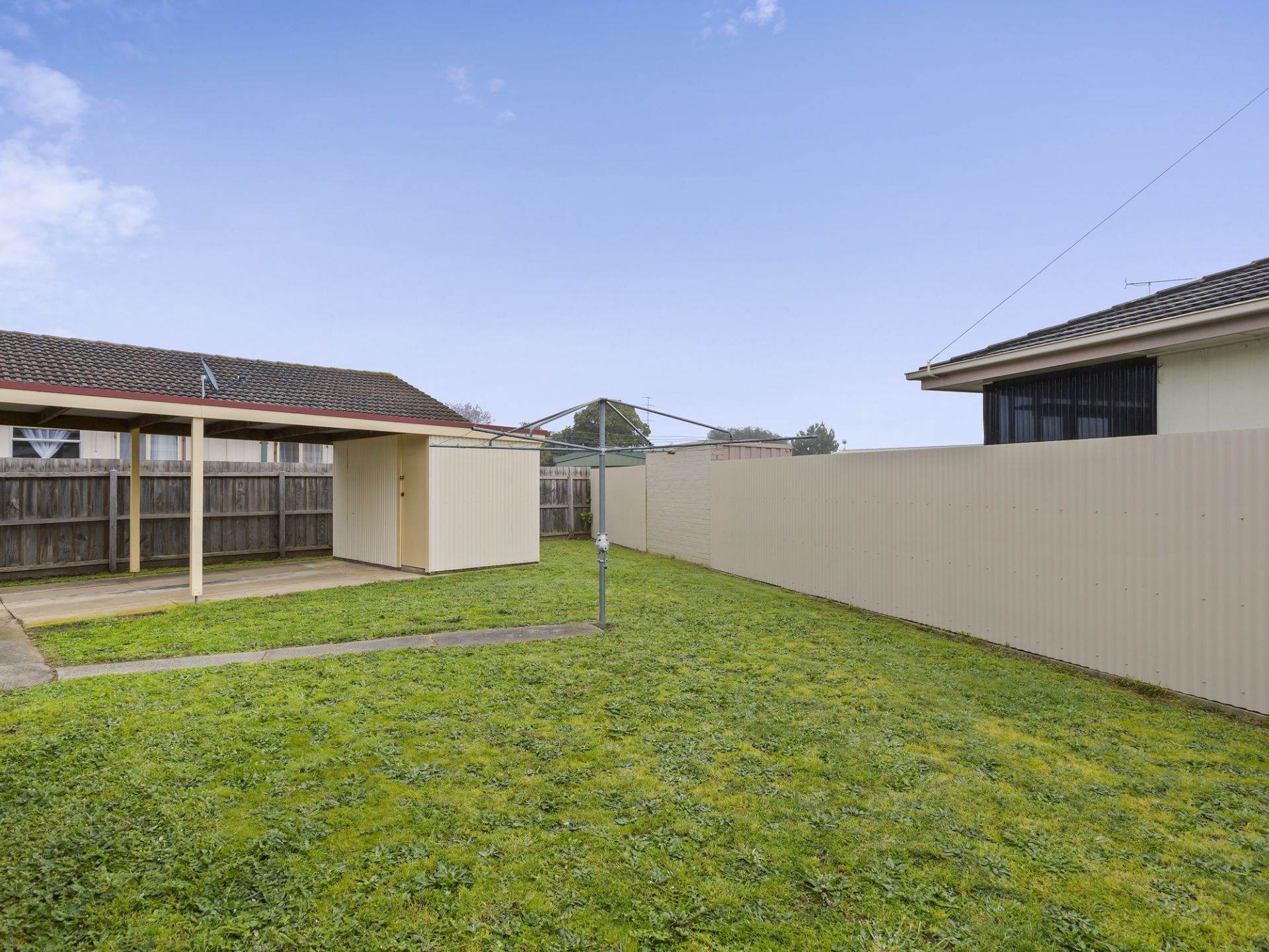 This comfortable clad home has received an updated back deck in recent years, offers a single carport.