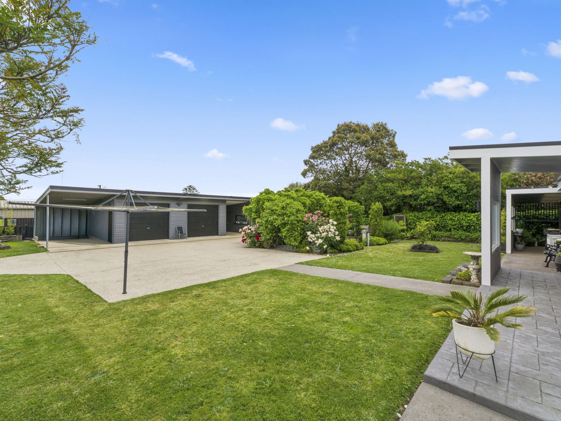 The gardens surrounding the home are a true delight, meticulously established to offer privacy, shade and year-round beauty. Everywhere you look there is something to enjoy, from colourful plantings to peaceful sitting areas, screened spaces and raised veggie boxes ready for home-grown produce. The outdoor environment is both impressive and practical, with a garden shed tucked neatly at the back and a convenient clothesline for everyday living.