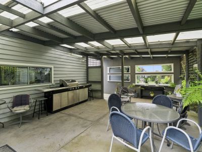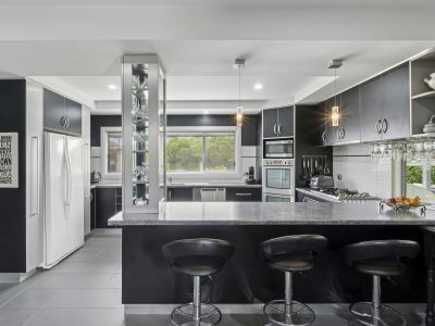 At the heart of this residence sits a chef's dream kitchen, offering exceptional storage, expansive bench space and an impressive three-oven setup-perfect for hosting dinner parties or preparing meals for family and friends. The adjoining formal dining room provides an elegant space for indoor entertaining, while the deck flowing off the kitchen offers a sheltered, all-weather outdoor dining option. Completing the entertainer's package is another outdoor kitchen, ideal for family BBQs on warm summer days.