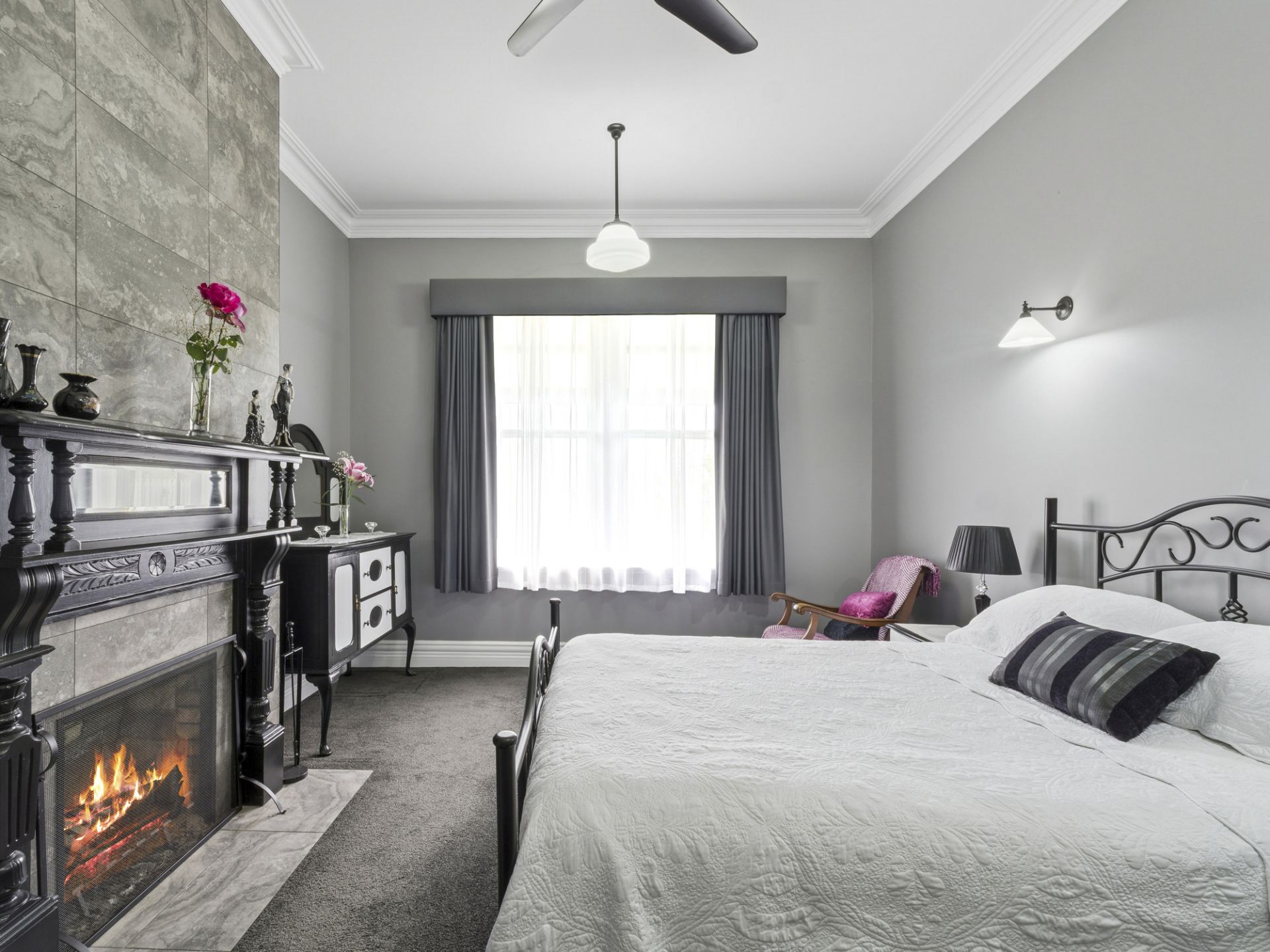 This exceptional home offers four spacious bedrooms and four well-appointed bathrooms, delivering complete comfort for family and guests alike. Two of the bedrooms feature their own charming fireplaces paired with private ensuites, with one also including a built-in wardrobe. The remaining two bedrooms provide ample built-in storage and are serviced by an additional contemporary bathroom. For added convenience, especially for those who love working outdoors, a fourth bathroom is located in the garage-ideal for gardeners, hobbyists or anyone wanting easy access without stepping through the home.