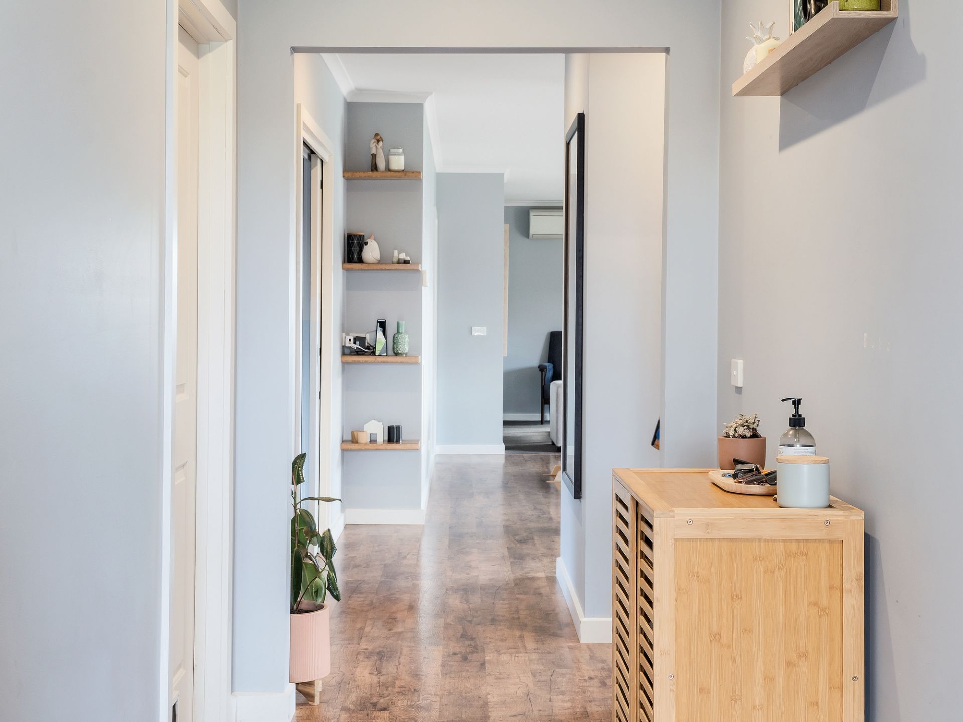 11 Jakaranda Crescent possesses all the right attributes for simple and stylish living. The master bedroom suite is spacious and boasts an abundance of storage options via the walk in robe. Heading down the hallway, the timber floating floor and feature timber shelving adds warmth to the area. The open plan living/dining/kitchen area faces north and west and welcomes the gorgeous natural light through the windows and double doors. Cleverly designed, the kitchen boasts 900mm appliances, subway tile splash back and a home for everything with the pantry cupboard and plenty of cabinetry. The children's or guest wing offers spacious bedrooms with built in robes and a family friendly bathroom with full shower and bath.