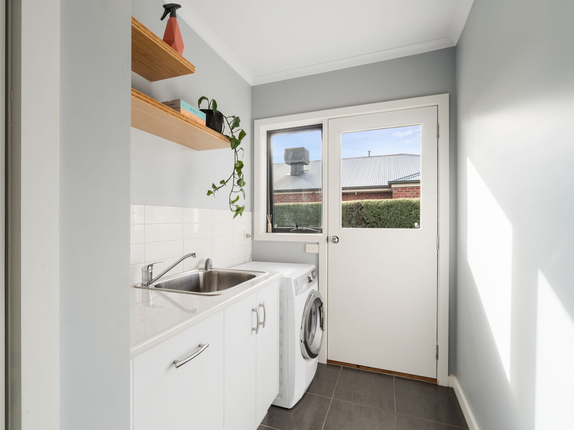 Outside, the low maintenance hedging is well established and provides welcome privacy of the alfresco and lawn area.