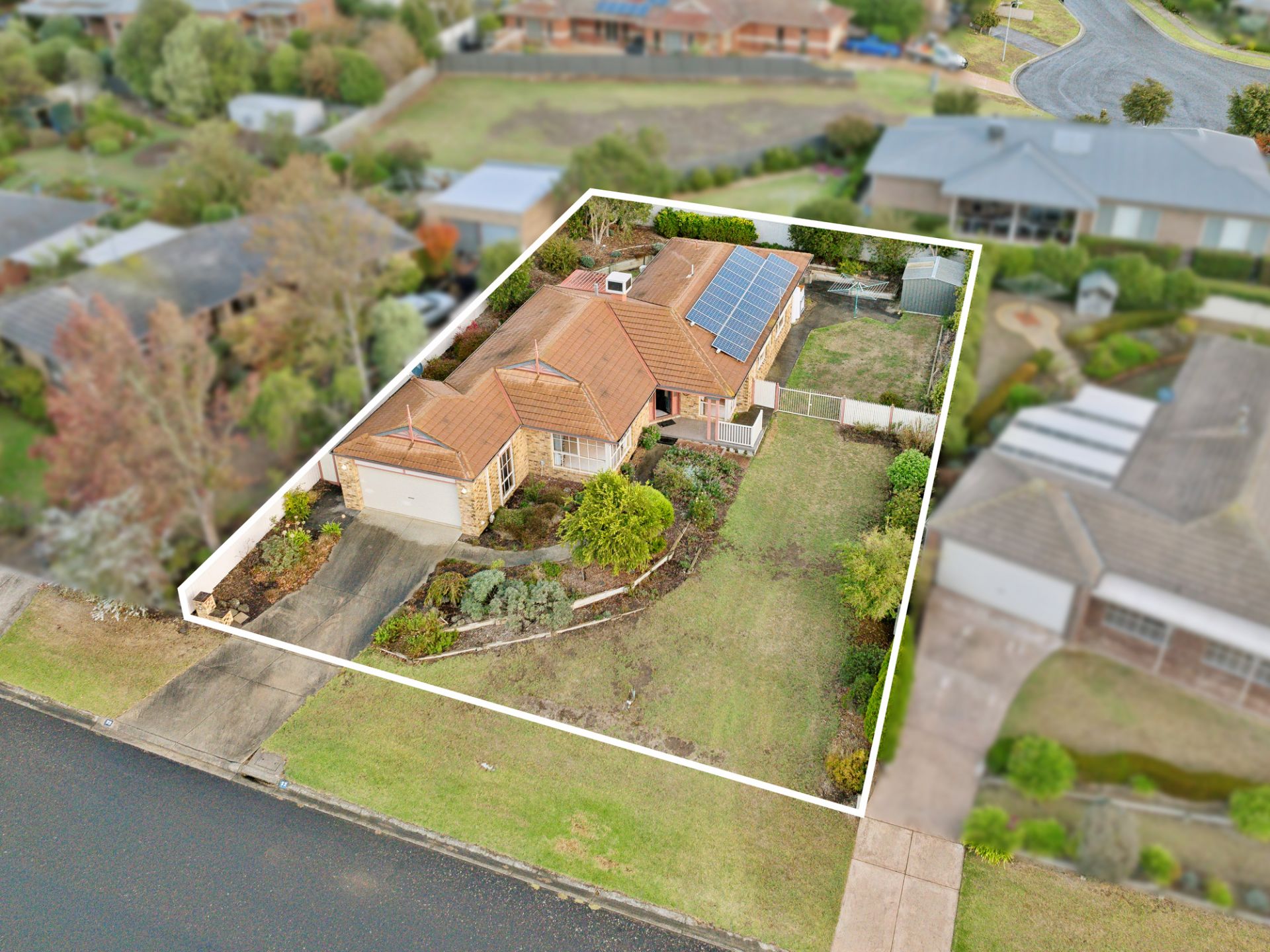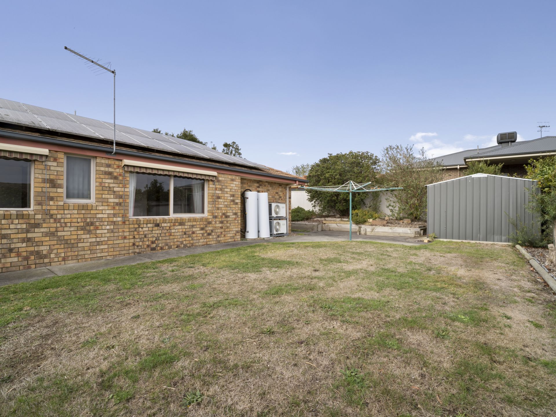 Additional features include the double garage, garden shed, secure fencing, side gate to the yard (for the caravan) and outdoor blinds on the west wall.