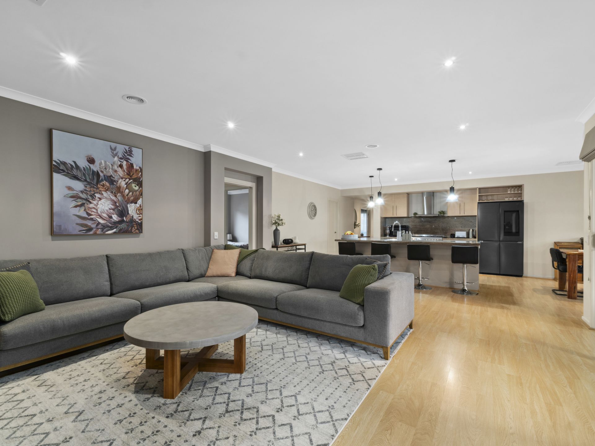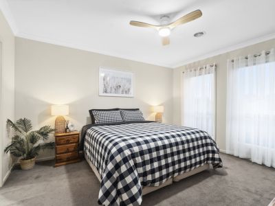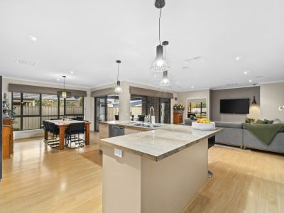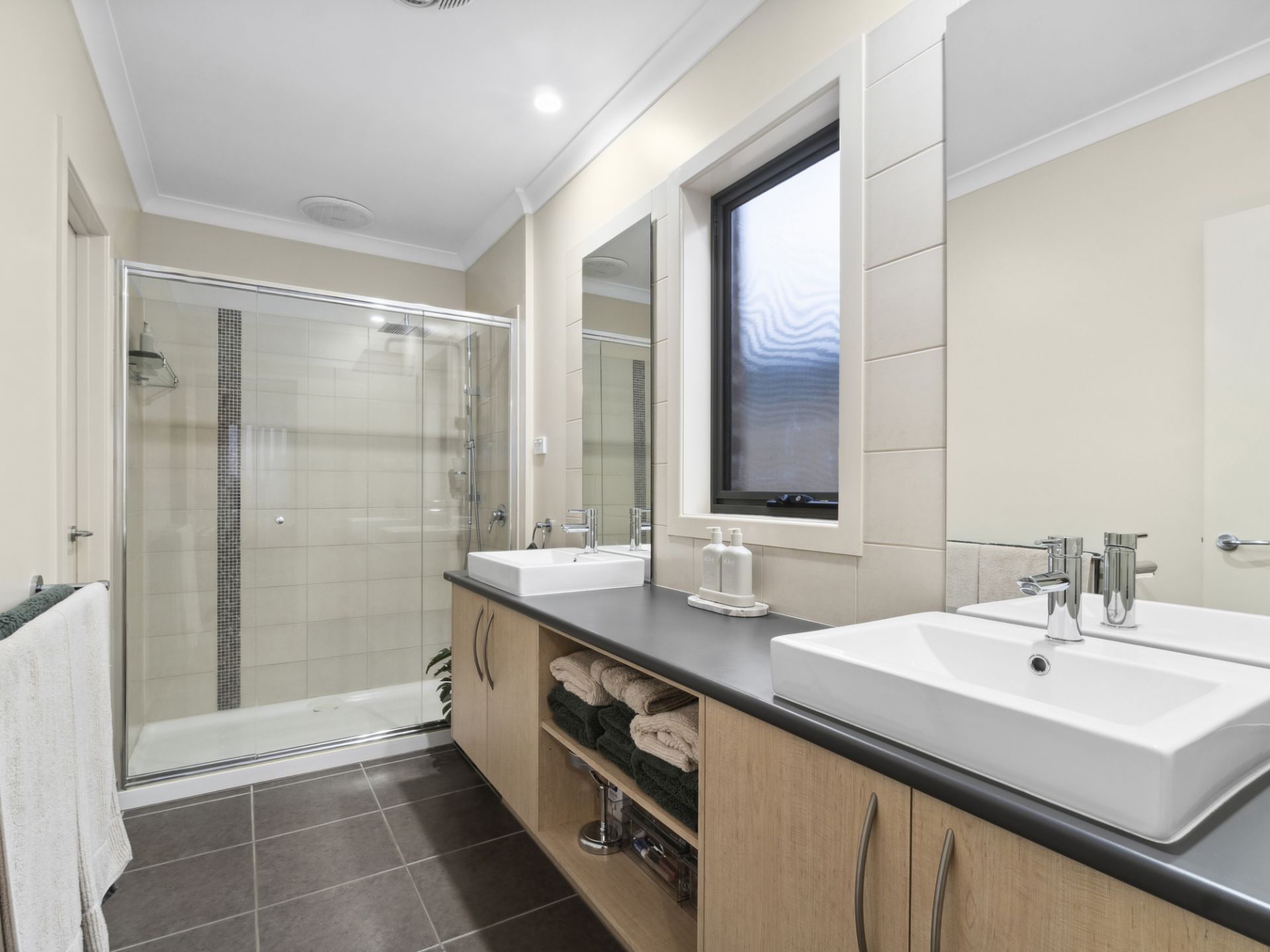 Upon entry, you will find a spacious master bedroom suite facing west to embrace the afternoon sun. Featuring a walk in robe, and ensuite with separate toilet. Across the hall, is the third sitting room/office, making an ideal parent's retreat. Stepping through to the kitchen and dining area, the kitchen boasts a walk in pantry where you can unload the groceries straight from the garage. Also featured are stone benchtops, 900mm gas cooktop and electric oven, glass splashback and dishwasher. The house has two forms of temperature control including the evaporative cooling and ducted gas heating. Leading out from the dining area, the decking offers the perfect space to sit and enjoy a drink or BBQ dinner in the privacy and security of your own backyard. This floorplan is one of huge proportions and also includes an open plan lounge, media/theatre room and a further three large bedrooms with built in robes, well appointed laundry and central bathroom at the rear.