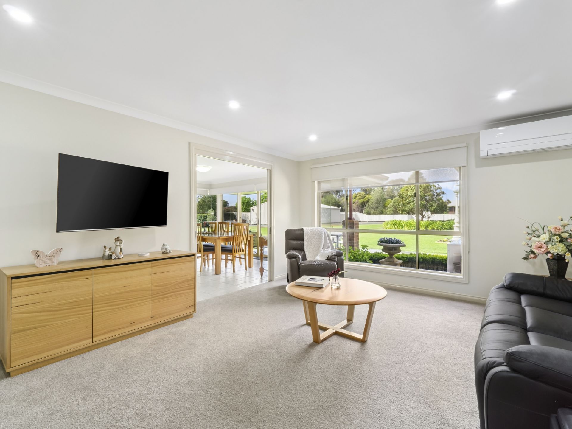 The beautifully maintained brick home comprising of three bedrooms plus an office and two separate living areas, has recently been updated with new window furnishings, carpet, downlights, ceiling fans and a neutral coat of paint. A new hot water service has also been installed. The master bedroom has a walk in robe, with an ensuite which was renovated three years ago. Across the entry is an office which provides direct access to the garage. The other two large bedrooms have built in robes, and there's a walk in storage cupboard and a separate linen cupboard in the hallway. The kitchen is positioned central to the home with a dishwasher, electric oven and cooktop. The kitchen and dining area look out to the immaculately presented lawn and garden, a standout being the well established hydrangeas adorning the windows. Light and spacious living spaces paired with large windows and double doors from the dining to the alfresco area, make meals with friends and family a delight. There are multiple outdoor entertaining areas offering places to sit to embrace the morning and afternoon sunshine. The firepit area provides ample seating and it's the perfect spot to enjoy evenings around the fire with marshmallows and drink in hand, or a place to relax and unwind in the shade on a hot summer's day. Well placed hedging borders the yard and offers screening from the neighbours. Two reverse cycle air conditioning units service the house, with the property boasting town water, mains sewer and power.