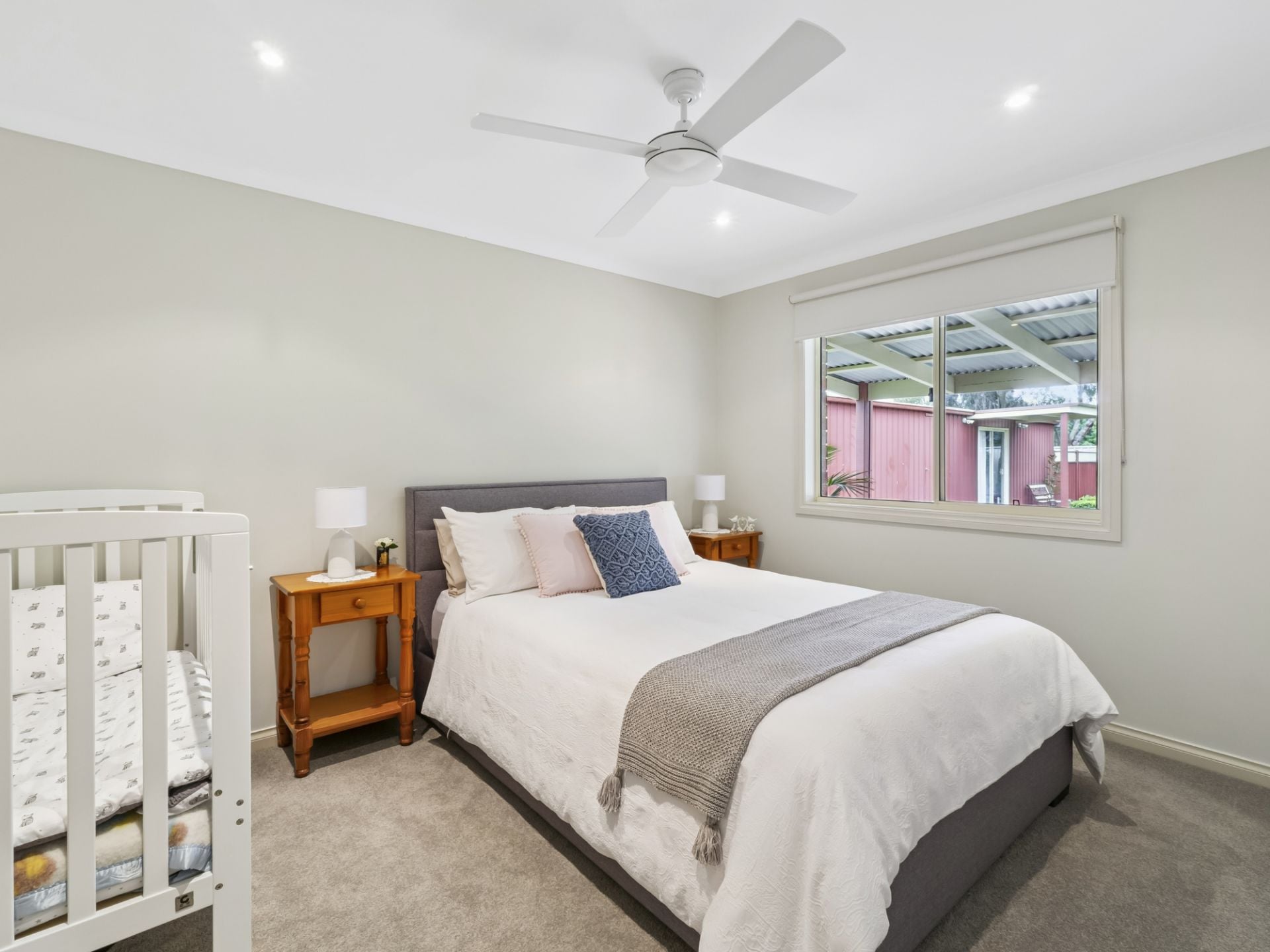 There is a 12m x 6m Colorbond garage/shed located in the backyard which is a family's dream. It contains a 6m x 6m storage area, and a 6m x 6m lined room with a reverse cycle air conditioner and ceiling fan which is currently used as a rumpus room. There is also a 14.5m x 7.5m colorbond four bay shed/workshop with concrete floor, shelving and easy access for vehicles, the caravan or trailer via the gravel driveway.